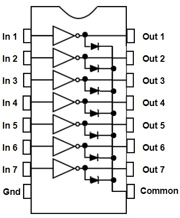 The ULN2003 is identical to the ULN2803 but with only seven outputs.