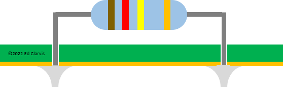 The soldered joints are perfect but the resistor is soldered at an odd angle. This can happen when the component comes loose after it has been turned over for soldering. A way of avoiding this is to bend the component's wires slightly outwards to prevent it from becoming loose when the circuit board is turned over.